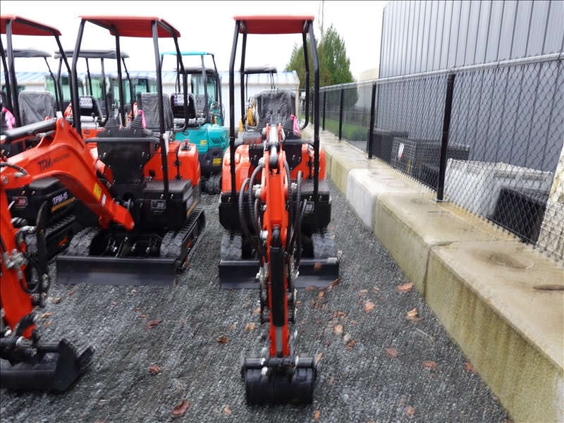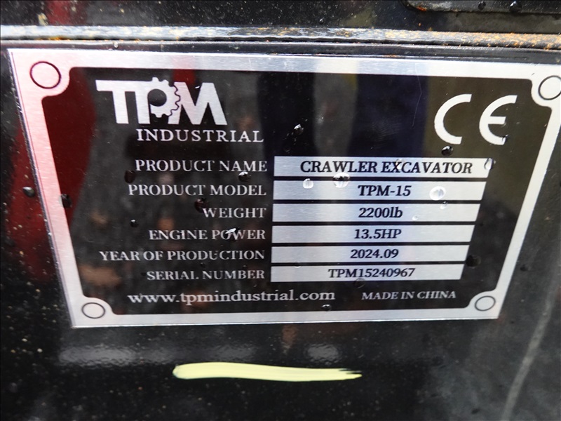 MINI EXCAVATOR, 13.5 HP BRIGGS & STRATTON 1 CYL GAS, 14" BUCKET, HYD THUMB, BLADE, RUBBER TRACKS, CANOPY