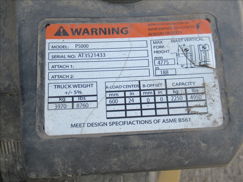 4,850 LB FORKLIFT, 4 CYL LPG, 188" 3 STAGE MAST W/SIDE SHIFT