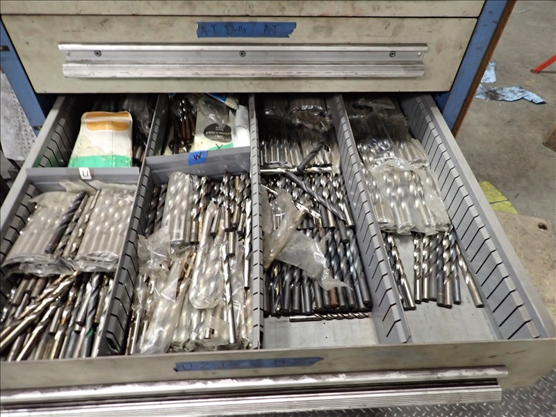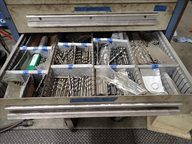 10-DRAWER CABINET ON CASTERS W/ASSORTED DRILLS, REAMERS, TAPS, HOLE SAWS & MISC. DRILLING/CUTTING SUPPLIES