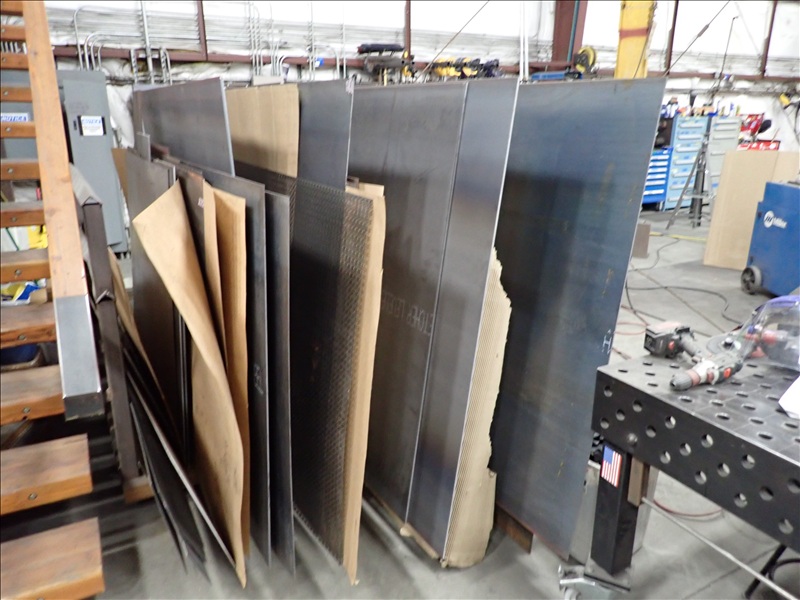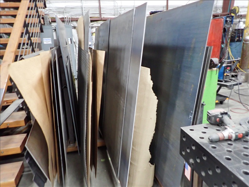 SHEET RACK W/ASSORTED STAINLESS, ALUMINUM & STEEL SHEETS