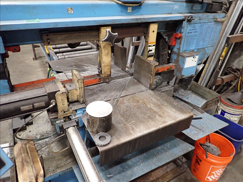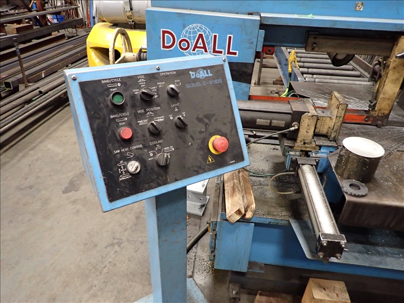 HORIZONTAL MITERING METAL CUTTING BANDSAW, CLAMP, COOLANT, IN/OUTFEED ROLL CASE, CONTROLS