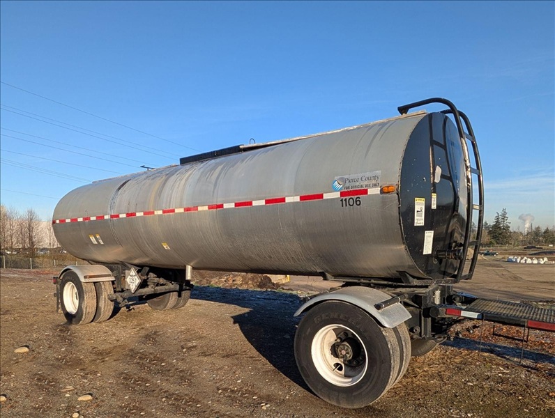 4,500 GALLON ALUMINUM 2-AXLE INSULATED HOT OIL PUP TRAILER, (COUNTY DISCLOSURE: CRACKS IN DOLLY, SHOULD NOT BE TOWED, LOCATED AT 4812 196TH ST E SPANAWAY, WA 98387. FOR PREVIEW PLEASE CONTACT WILL AT 253-798-2551, REMOVAL BY WEDNESDAY, FEBRUARY 26TH)