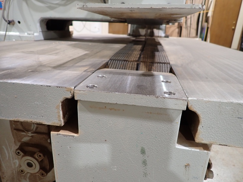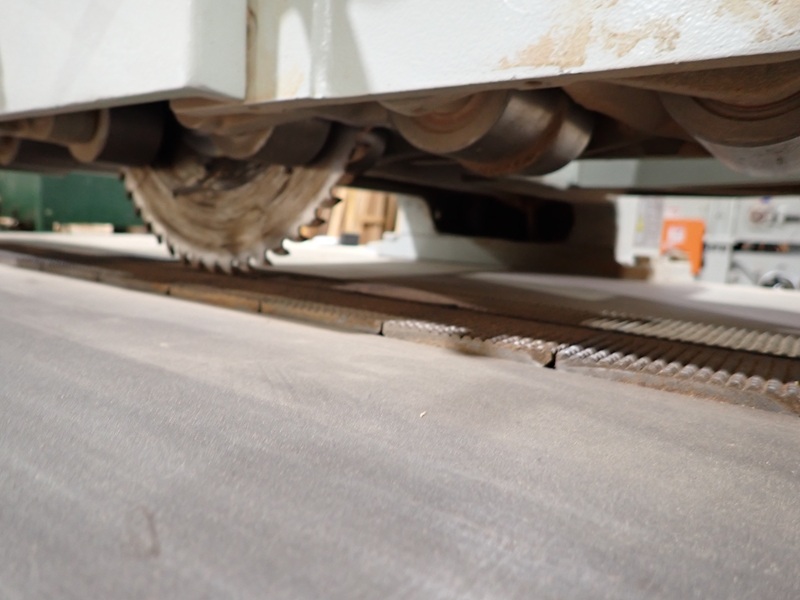 15 HP STRAIGHT LINE RIP SAW, 5" FEED CONVEYOR, FENCE