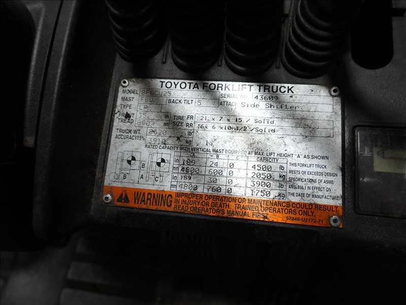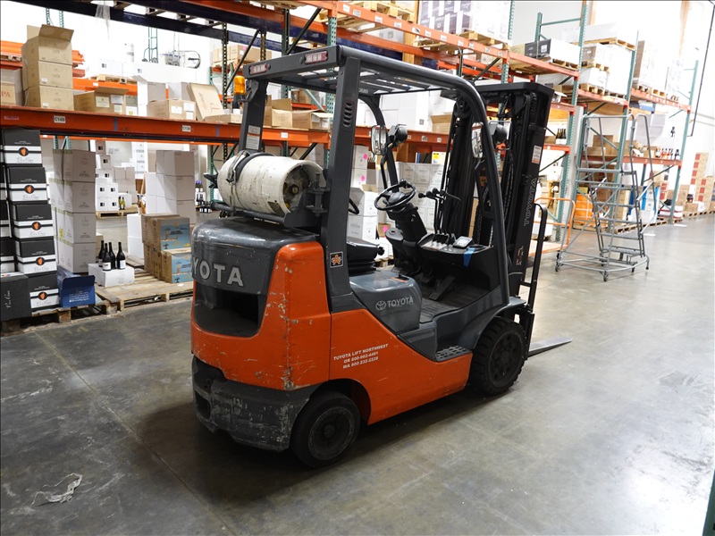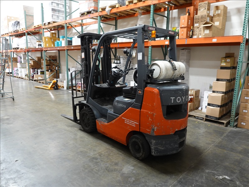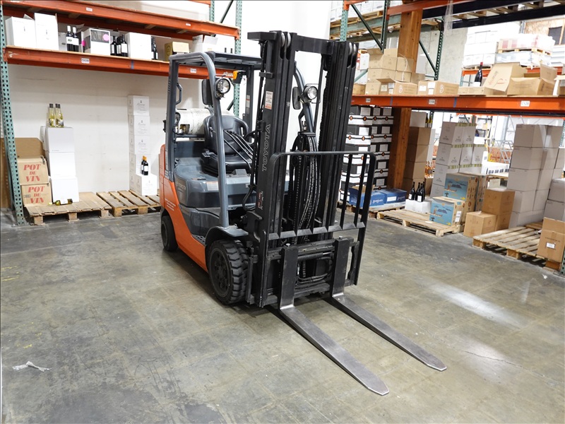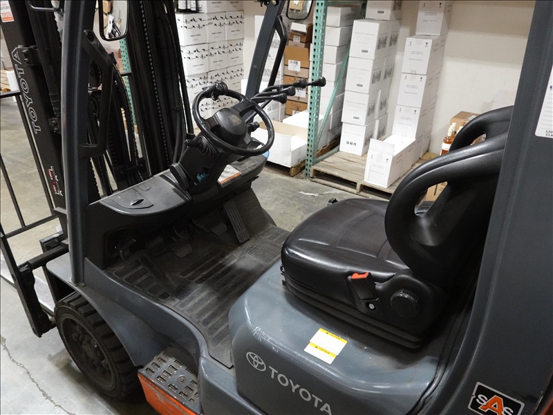 4,500 LB CAP CUSHION TIRE PROPANE FORKLIFT, 3-STAGE MAST, SIDE SHIFT, ROPS