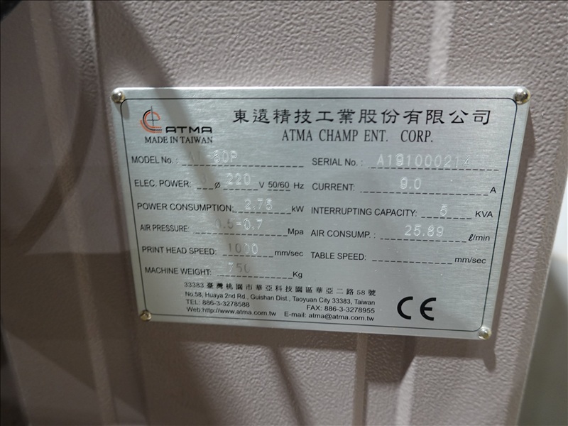 DIGITAL ELECTRIC FLATSCREEN PRINTER, HITCH DIGITAL DISPLAY, 7.9A, 3 PHASE, FOOT CONTROL, 0.5-0.7 MPA AIR PRESSURE