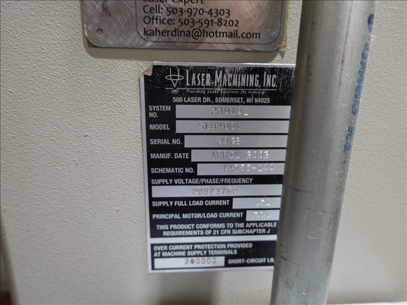 FIXED BEAM CNC 3-AXIS LASER, 56" X 60" TABLE, 208/3/60, 20A, EAGLE 500 POWER SUPPLY, AFFINITY FAA-022D-DD15CA COOLER