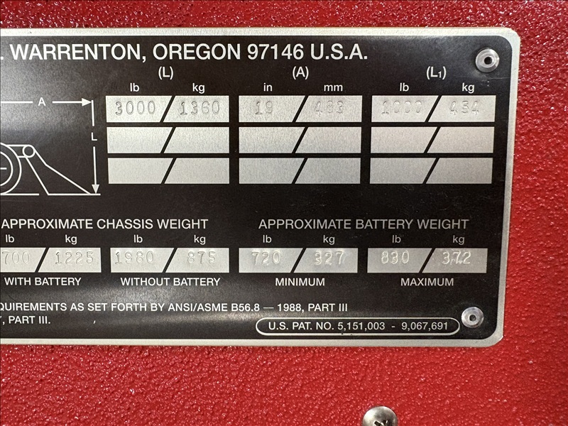 3000 LB ELECTRIC TUG W/1000 LB FRONT LIFT @ 19" HEIGHT, DRAWBAR PULL: 2565 LBS, 36V LESTRONIC II PORTABLE CHARGER
