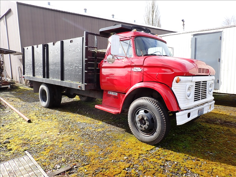 S/A FLATBED DUMP, V8, 4+2, 16' BED W/WOOD SIDES, DBL FRAME