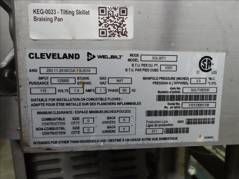 2016 CLEVELAND SGL30T1 TILTING SKILLET