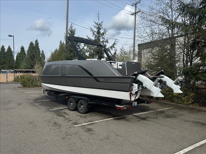 26' COMPOSITE PONTOON BOAT, TWIN ELECTRIC OUTDRIVES (NO THROTTLE AT THIS TIME), BIMINI TOP W/TANDEM AXLE BOATMATE TRAILER, WN#: WN0339KP, TRAILER VIN: 5A7BB2428NT001998