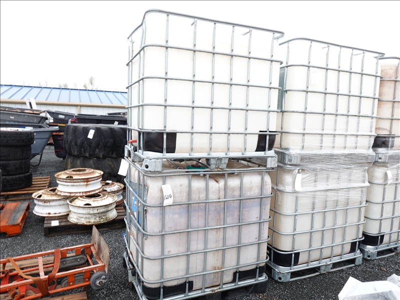 LOT, (2) 250-GALLON POLY TANKS IN ALUMINUM CAGE