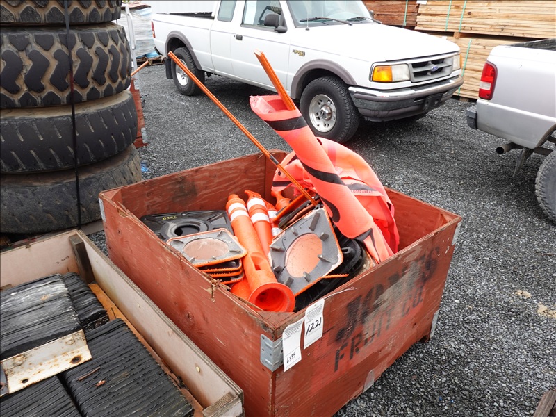LOT, ASSORTED SAFETY CONES & FLAGS IN THIS BIN (MUST TAKE BIN)