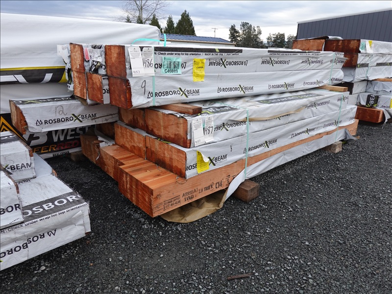 LOT, 7" X 17" & 7" X 14" GLULAM BEAMS AT APPROX 7' - 12' LENGTHS (NO REMOVAL BEFORE WEDNESDAY, APRIL 23RD)