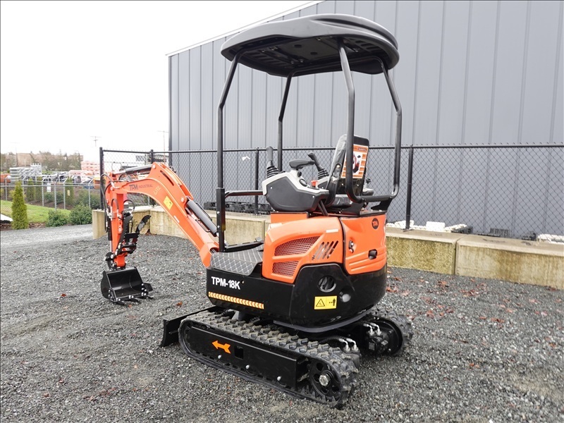 MINI EXCAVATOR, 3 CYL KUBOTA DIESEL, 13" BUCKET, HYD THUMB, SWING BOOM, AUX HYD, BLADE, RUBBER TRACKS, CANOPY