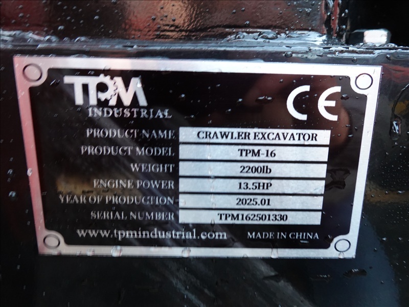 MINI EXCAVATOR, BRIGGS & STRATTON 13.5 HP GAS, 13" BUCKET, HYD THUMB, AUX HYD, BLADE, RUBBER TRACKS, CANOPY