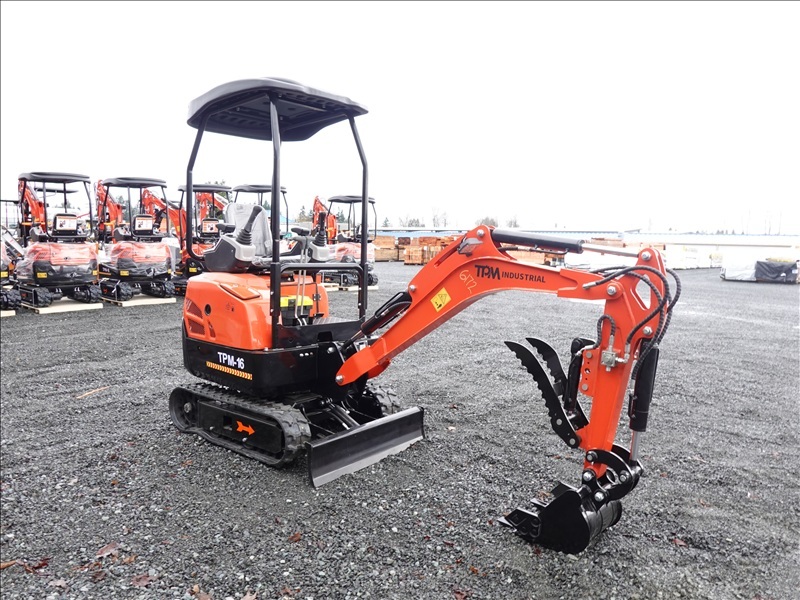MINI EXCAVATOR, BRIGGS & STRATTON 13.5 HP GAS, 13" BUCKET, HYD THUMB, AUX HYD, BLADE, RUBBER TRACKS, CANOPY