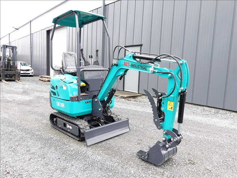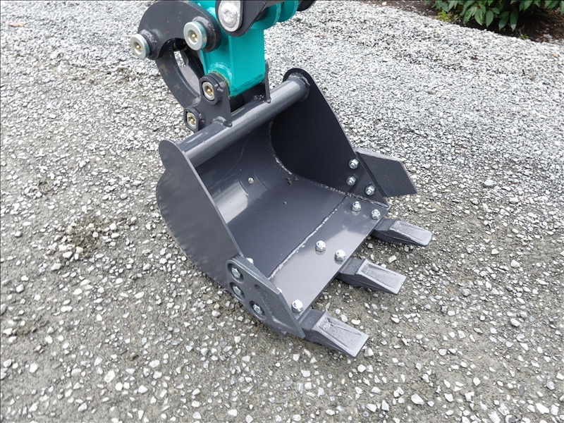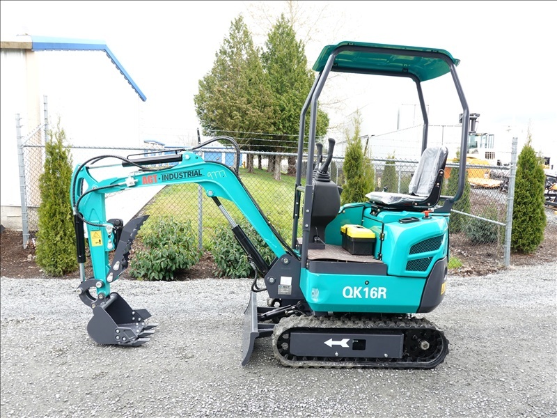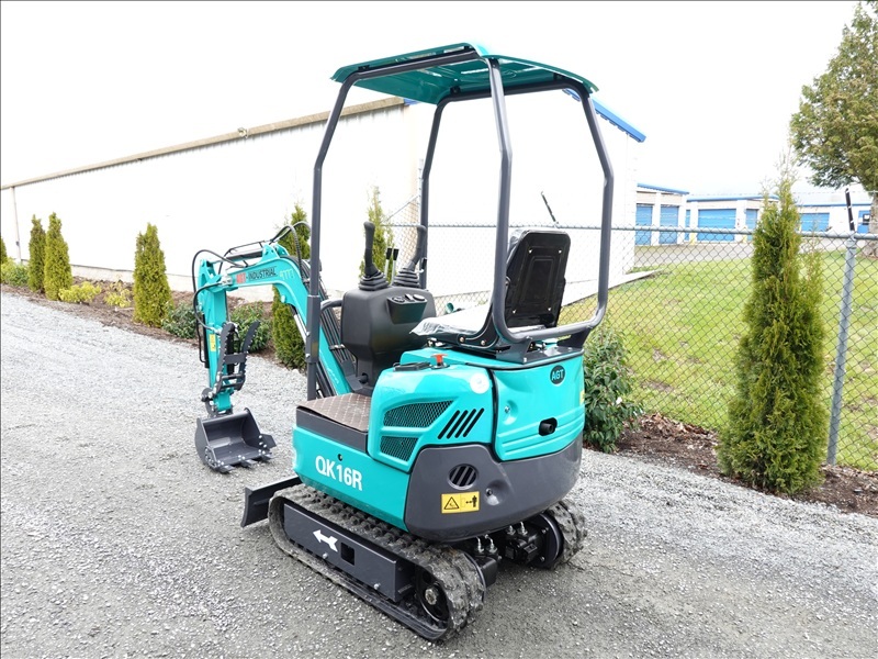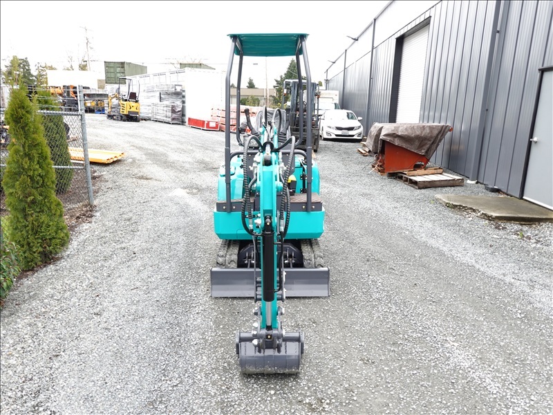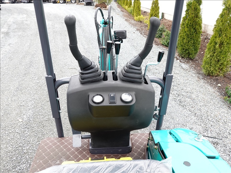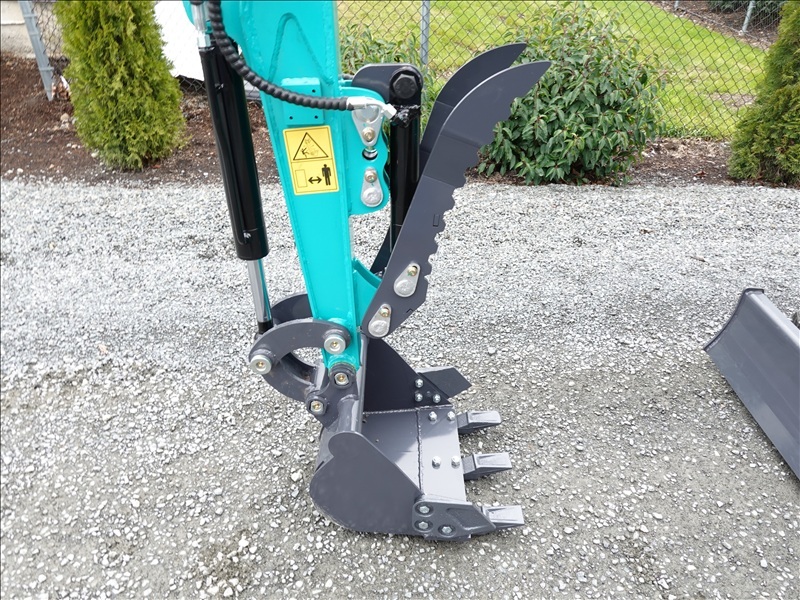 MINI EXCAVATOR, 420 CC GAS ENGINE, 13" BUCKET, HYD THUMB, BLADE, RUBBER TRACKS, CANOPY