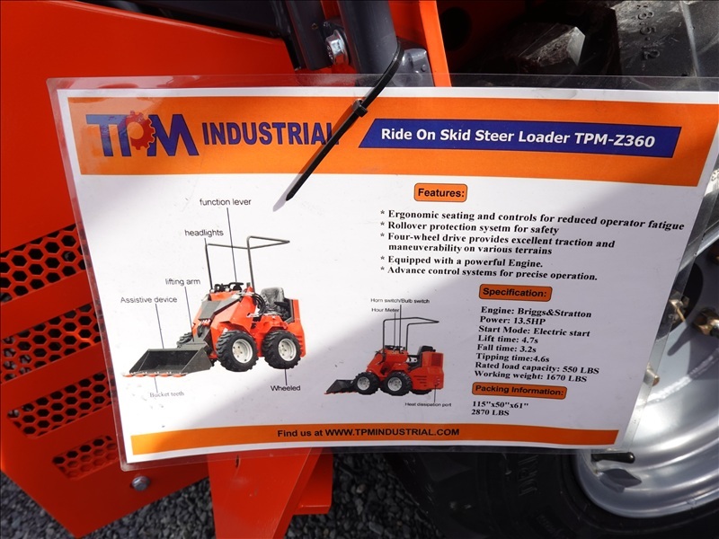 COMPACT SKID STEER LOADER, 13.5 HP/420 CC BRIGGS & STRATTON GAS ENGINE, QC 40" BUCKET, AUX HYD, CANOPY