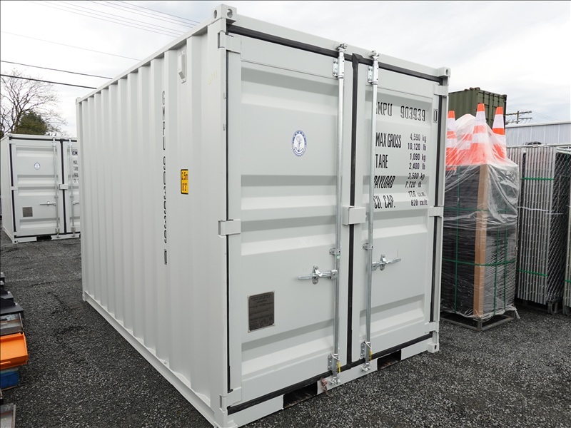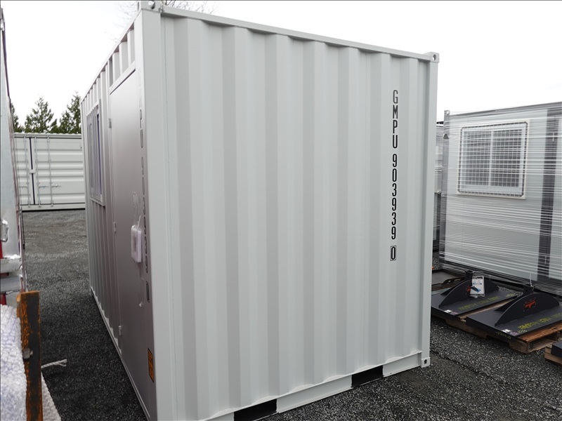 12' X 7.5' X 8' PORTABLE SHIPPING/OFFICE CONTAINER W/SIDE DOOR, WINDOW, DOUBLE SWING END DOORS & FORK POCKETS (UNUSED, MEASUREMENTS ARE APPROX)
