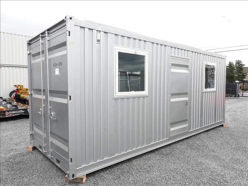 20' X 7' X 8' CONTAINER HOUSE W/SIDE DOOR, WINDOWS, DOUBLE SWING END DOORS & FORK POCKETS (UNUSED, MEASUREMENTS ARE APPROX, NO REMOVAL UNTIL WEDNESDAY, APRIL 23RD)