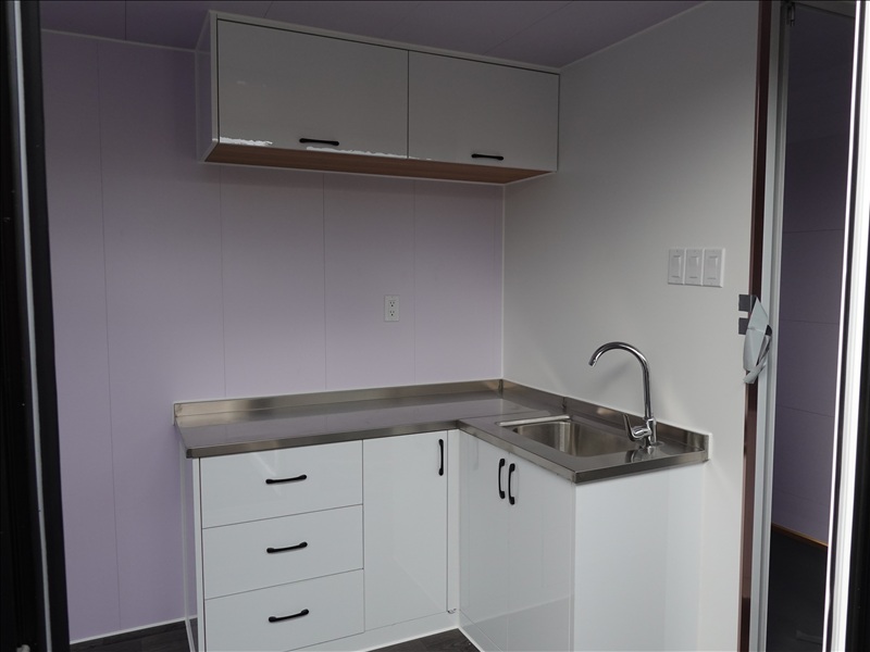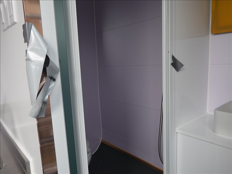 20' X 7' X 8' PREFAB TINY CUBE W/TOILET, SINKS, SHOWER, LIGHTS, FUME EXTRACTOR & FORK POCKETS, 110V (UNUSED, MEASUREMENTS ARE APPROX, NO REMOVAL UNTIL WEDNESDAY, APRIL 23RD)