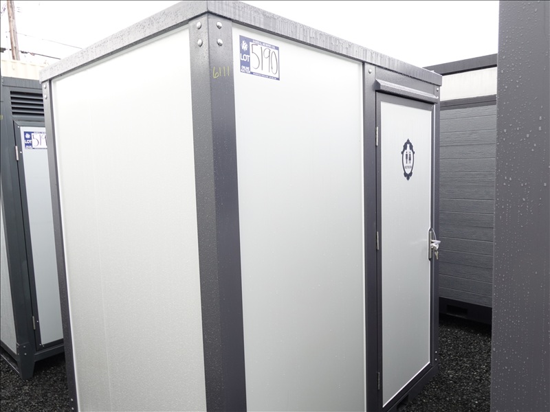 7' X 5.5' X 7.5' PORTABLE RESTROOM W/TOILET SINK, SHOWER, LIGHTS, WINDOW, FUME EXTRACTOR & FORK POCKETS, 110V (UNUSED, MEASUREMENTS ARE APPROX)