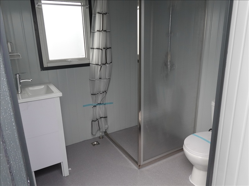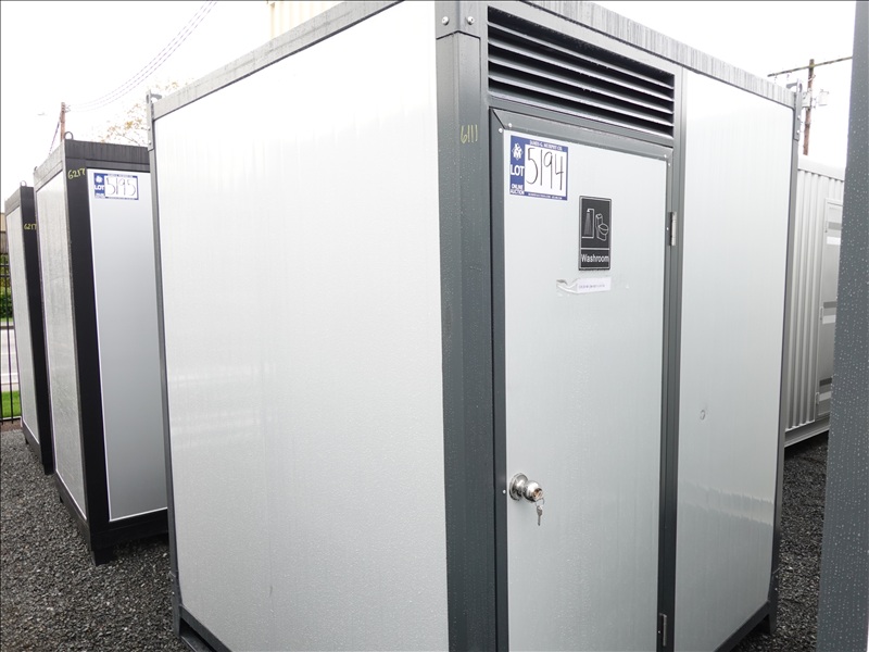 6.5' X 6.5' X 8' PORTABLE RESTROOM W/TOILET, SINK, SHOWER, LIGHTS, WINDOW & FUME EXTRACTOR (UNUSED, MEASUREMENTS ARE APPROX, NO REMOVAL UNTIL WEDNESDAY, APRIL 23RD)