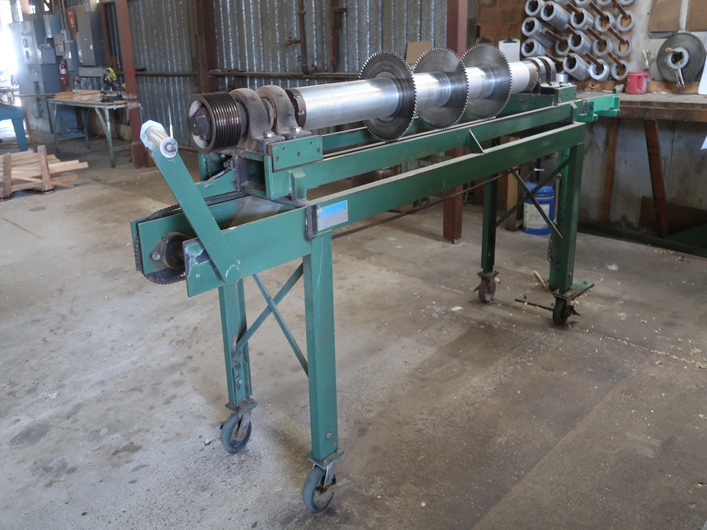 PANEL SAW W/75 HP/3,550 RPM ARBOR MOTOR, POWERED FEED ROLLS, HYDRAULIC DRIVEN INFEED ROLLCASE, APPROX. 48"X20' SCISSOR LIFT INFEED W/GRAVITY ROLLS, OVERHEAD SHEET FEEDER, APPROX. 48"X20 SCISSOR LIFT OUTFEED W/GRAVITY ROLLS, SPARE ARBOR, POWERTECH 10 HP, 10 GPM HYDRAULIC UNIT, SUPPORT EQUIPMENT & SPARES