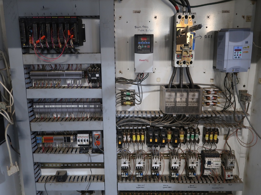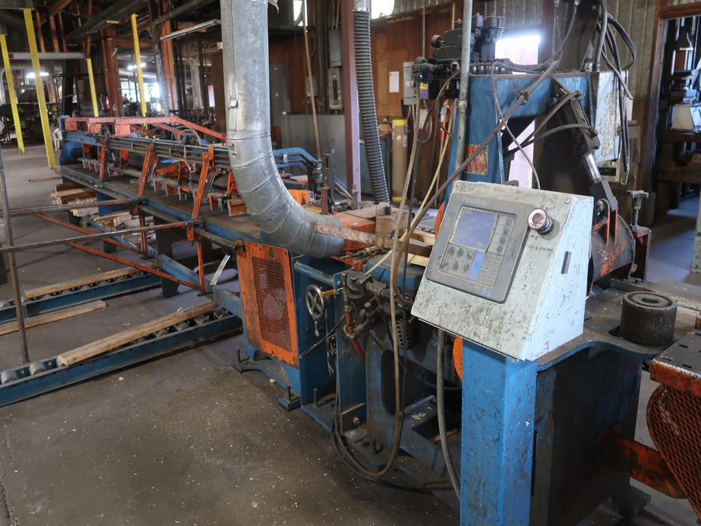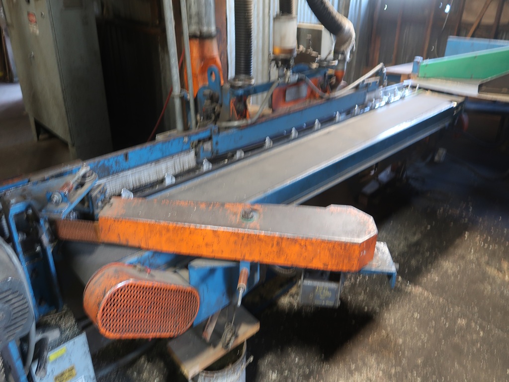 FINGER JOINTING LINE W/HYDRAULIC TILT HOIST INFEED, FEED ROLLERS, BLOCK BELT, FINGER JOINT STATIONS, MANUAL CORNER, CROWDER ROLLS, CUT OFF SAW, 20' PAYOUT TABLE, LH CHOP SAW, SUPPORT ELECTRICS, SPARES HEADS & PARTS