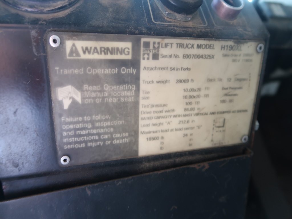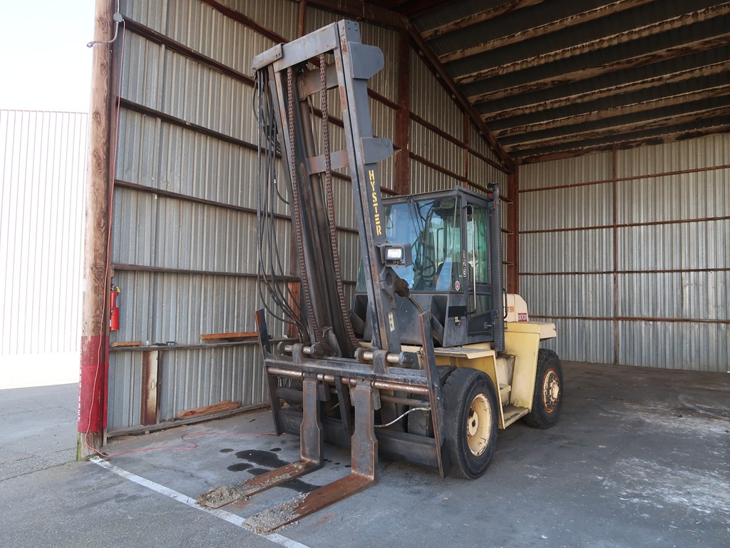 18,500 LB. CAP. DIESEL FORKLIFT, MONOTROL, 212-1/2" 2-STAGE MAST, FORK PLACERS, SIDE SHIFT, DUAL PNEUMATIC TIRES (NEEDS WORK)