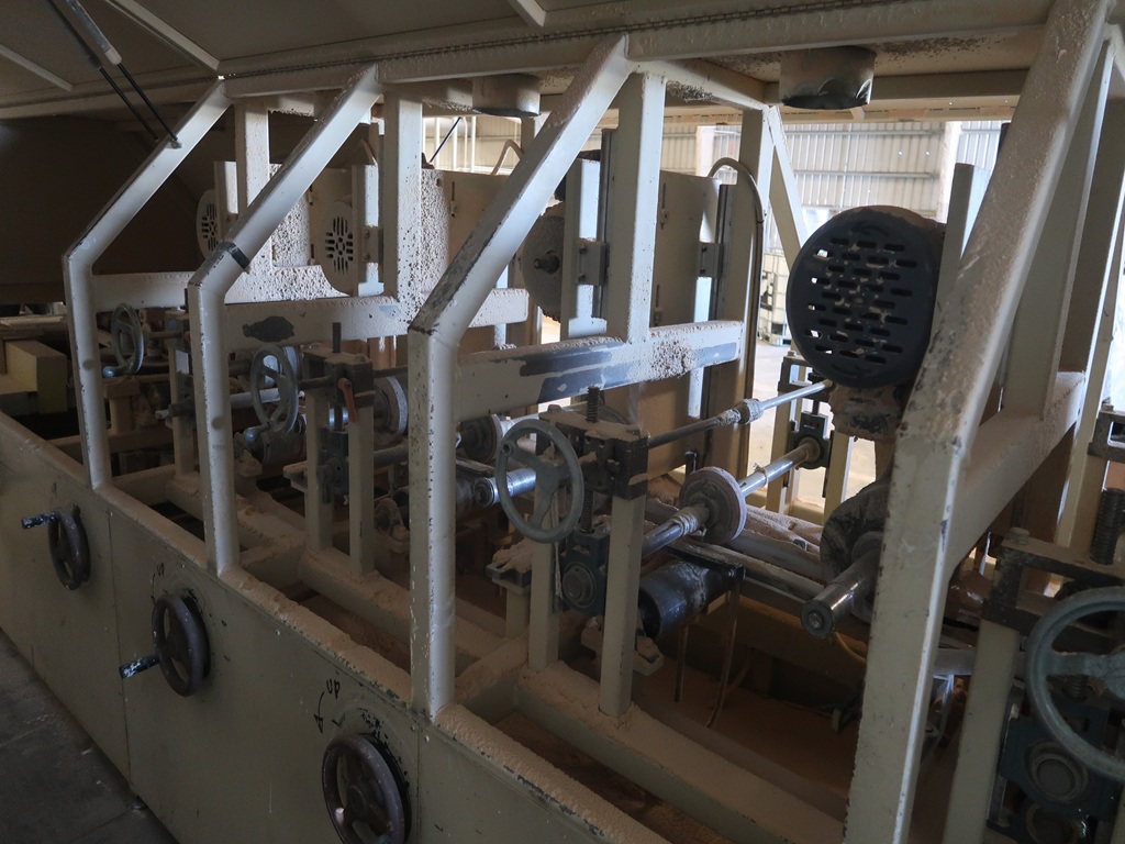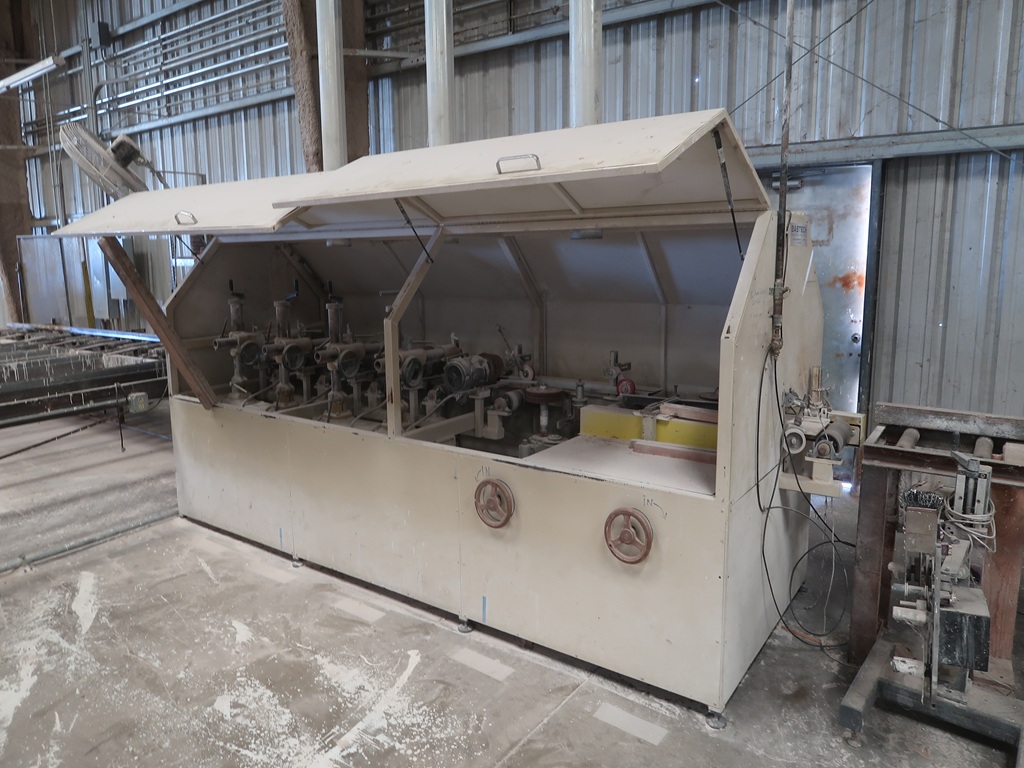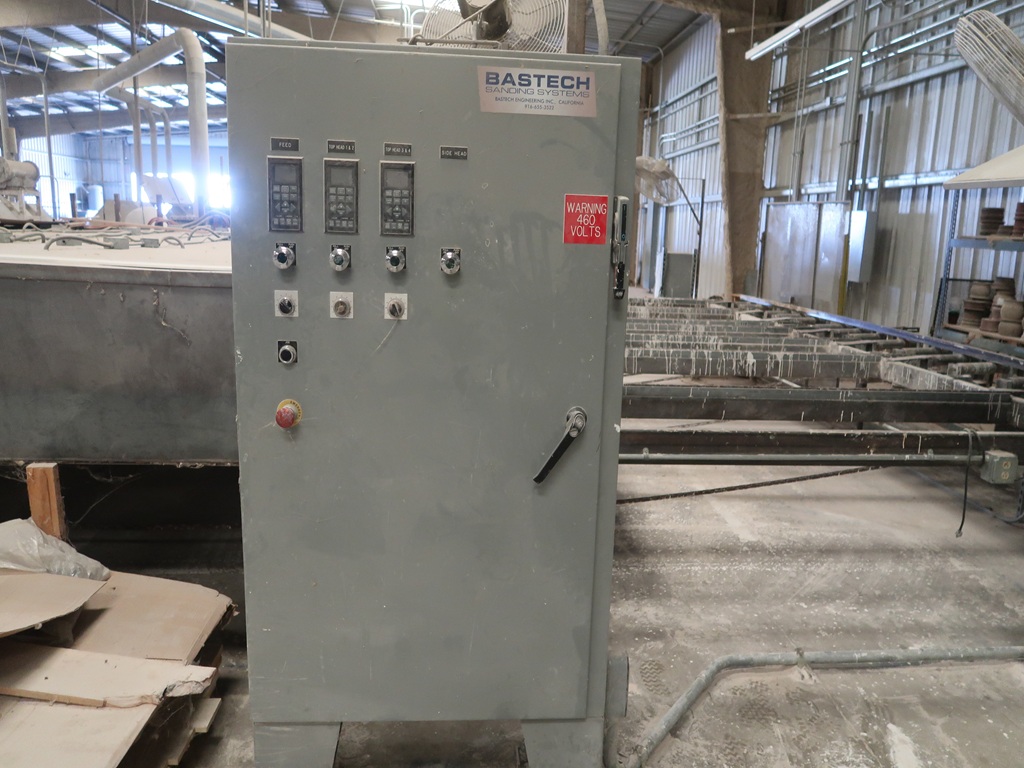 (3) BASTECH SANDERS W/8-HEADS, INFEED BELT TRANSFER, (2) INFEED ROLLCASES W/(3) 2,500 LB. CAP. SCISSOR LIFTS, SUPPORT ELECTRICS