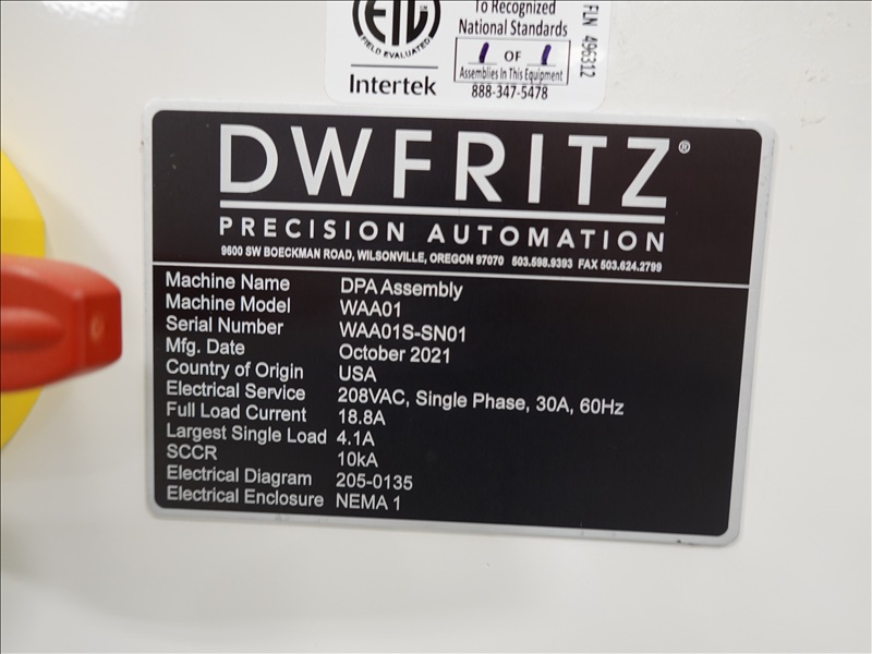 DPA ASSEMBLY CNC LASER CUTTER, 208 VAC, SINGLE PHASE, 30A, 60 HZ, 18.8A FULL LOAD CURRENT