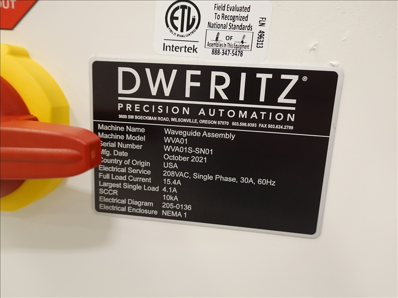 WAVEGUIDE ASSEMBLY CNC LASER CUTTER, 208 VAC, SINGLE PHASE, 30A, 60 HZ, 15.4A FULL LOAD CURRENT