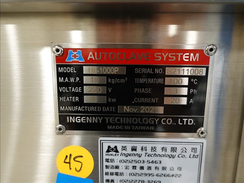 AUTOCLAVE, 100C TEMP, 10KG/CM2 MAWP, 220V, 20A, 3 PHASE