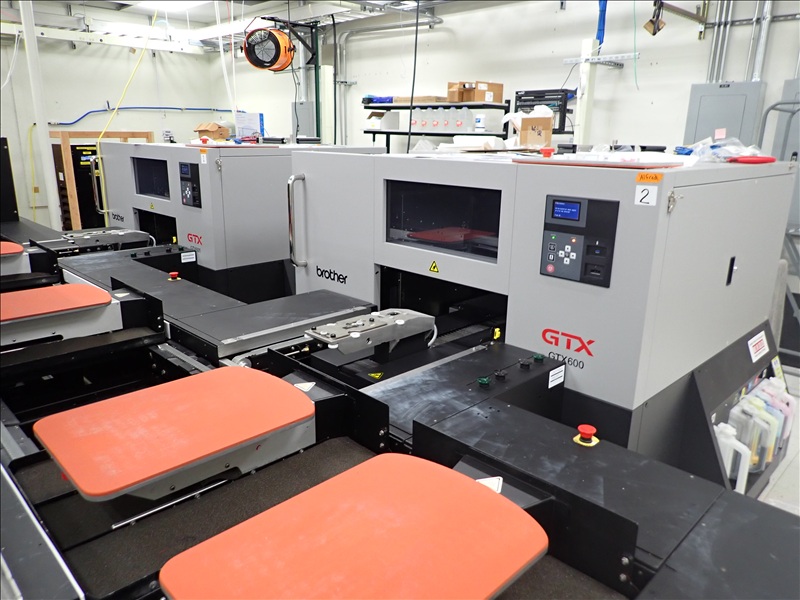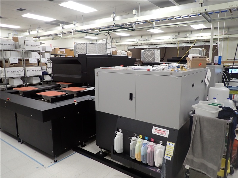 STREAMLINE MASS PRODUCTION DIRECT TO GARMENT DIGITAL PRINTLINE, (2) BROTHER GTX600NB GARMENT PRINTERS, SYNERGY PRE-TREAT STATION, FIREFLY DRYER, PRE-TREAT MIX STATION, HEAT PRESS, FIREFLY 2-COMPARTMENT FINISH DRYER, (22) PLATENS, TOUCH SCREEN CONTROLS, SCANNERS, ACCESSORIES & SPARE PARTS
