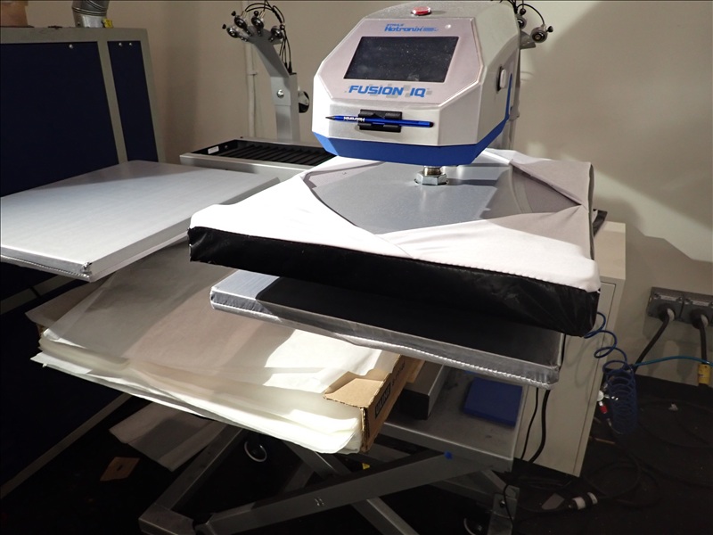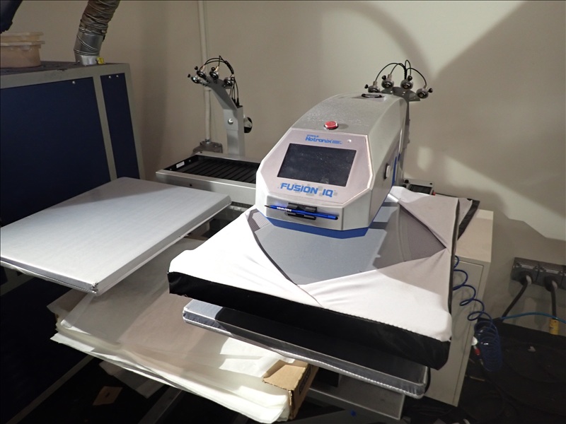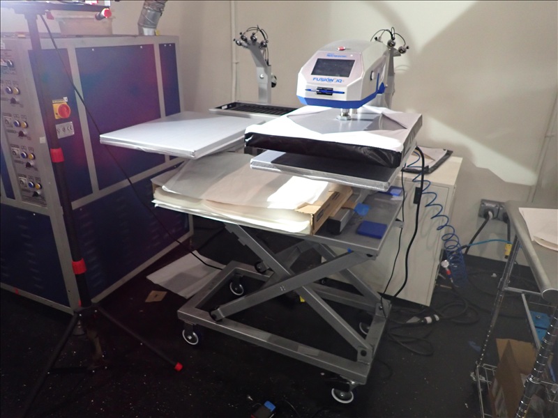 2-STATION THERMAL TRANSFER PRESS W/SCISSOR LIFT CART, S/N: 202306994