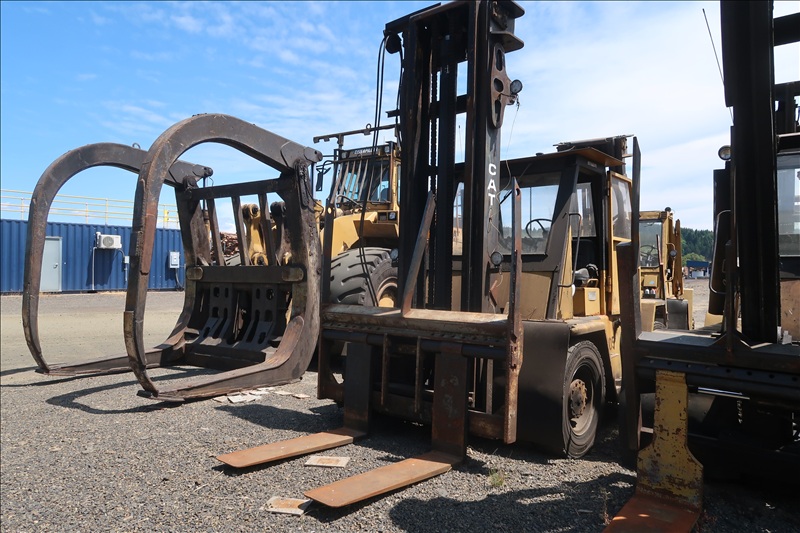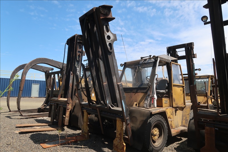 (7) 1983-1987 CAT C200B FORKLIFT, 20,000LB CAPACITY, CAT DIESEL ENGINES, 218" 2-STAGE MASTS WITH S/S, SUAL PNUEMATIC 9.00-20 TIRES, 48" LUMBER FORKS