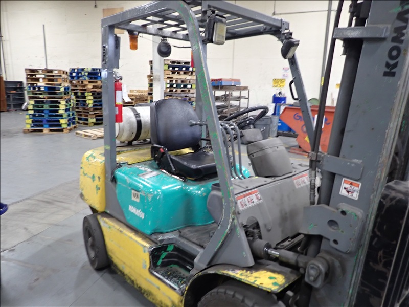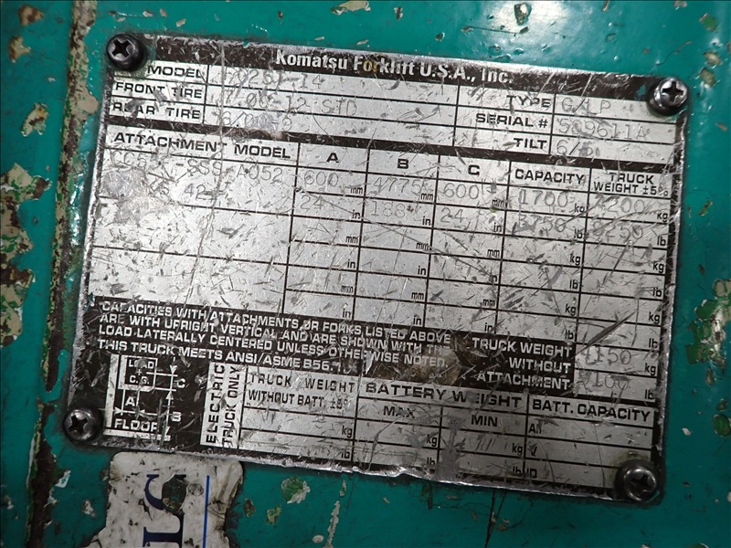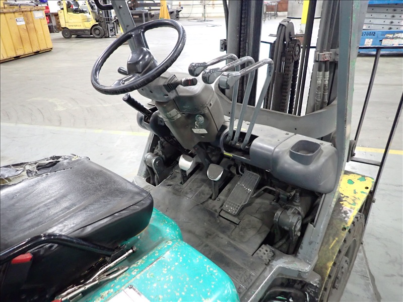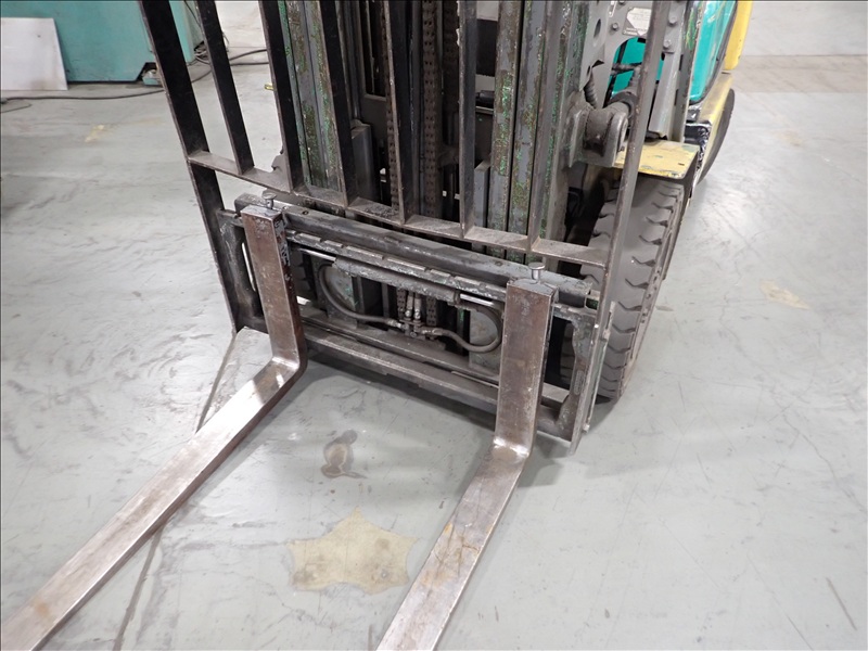 3,750 LB. CAP. CUSHION TIRE FORKLIFT, 188" 3-STAGE MAST, SIDE SHIFT, DUAL FUEL, HOUR METER READS: 8,490