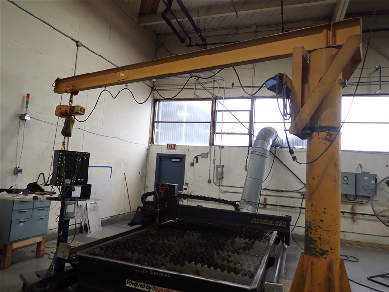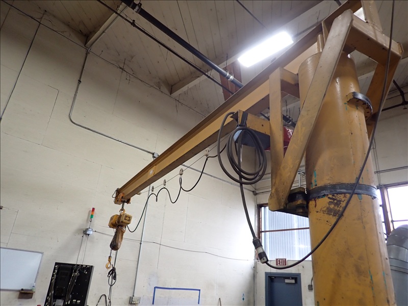 16' PEDESTAL MOUNTED 1,000 LB. CAP. JIB CRANE, HARRINGTON 1-TON CAP. CHAIN HOIST
