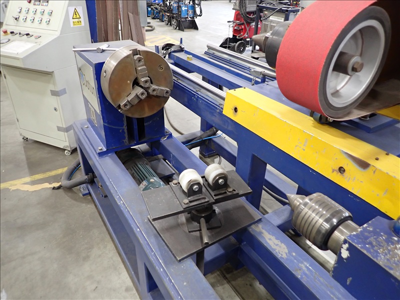 AUTOMATIC TUBE POLISHER, 4" BELT, 3-JAW CHUCK, TAIL STOCK & CONTROLS