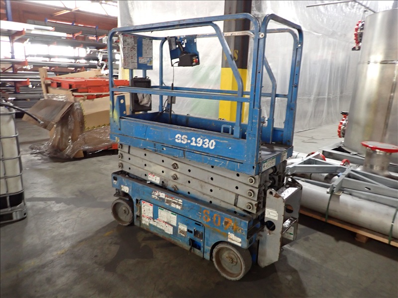 19' ELECTRIC SCISSOR LIFT, HOUR METER READS: 590