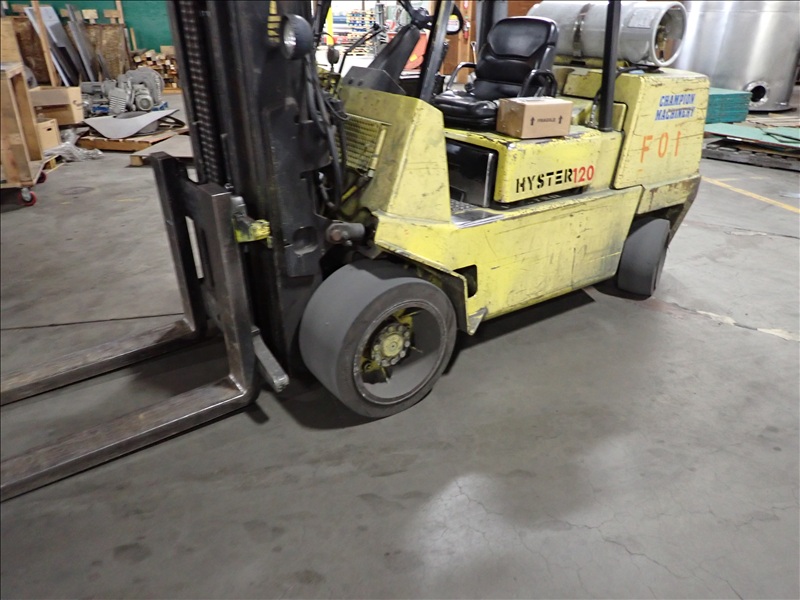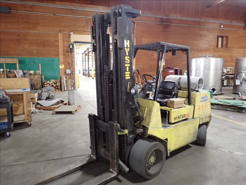 APPROX. 12,000 LB. CAP. SOLID TIRE FORKLIFT, 208" 3-STAGE MAST, SIDE SHIFT, PROPANE, MONOTROL, 6' FORKS, HOUR METER READS: 5,510