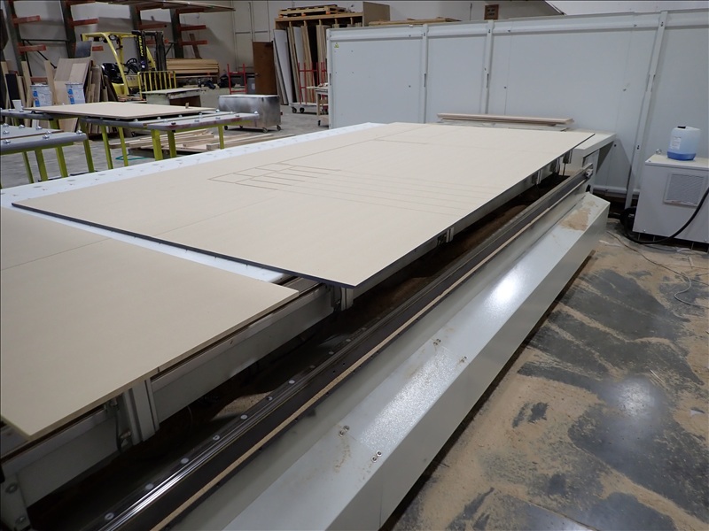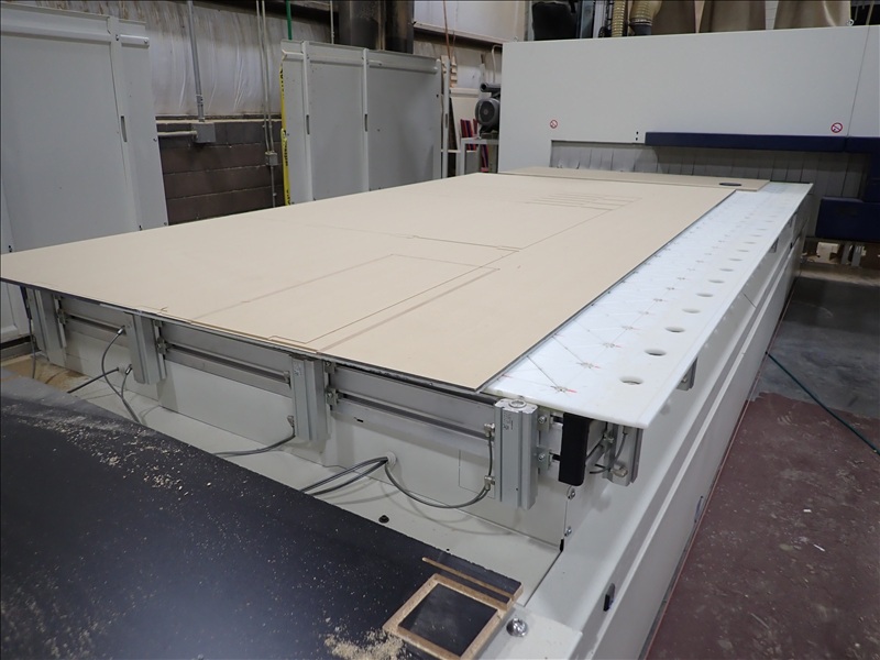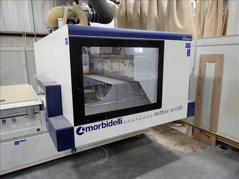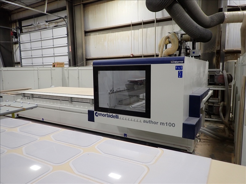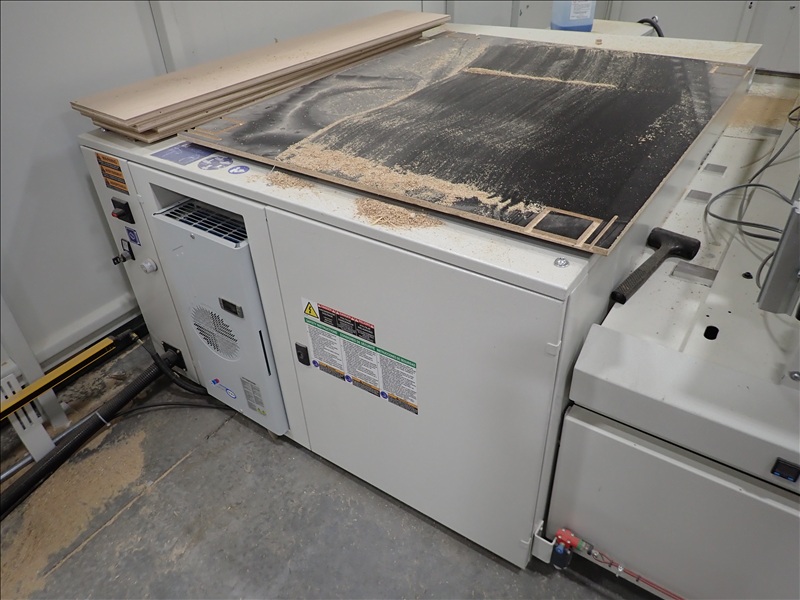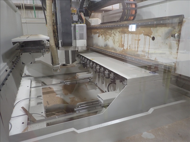 AUTHOR M100 5-AXIS CNC MACHINING CENTER, 5'X12' VACUUM TABLE, (2) 14-STATION ATC'S, (2) SPINDLES, (2) BECKER VACUUM PUMPS, TRANSFORMER, CONTROLS, WALL, REER LASER CURTAINS, ACCESSORIES, S/N: AA2/004369
