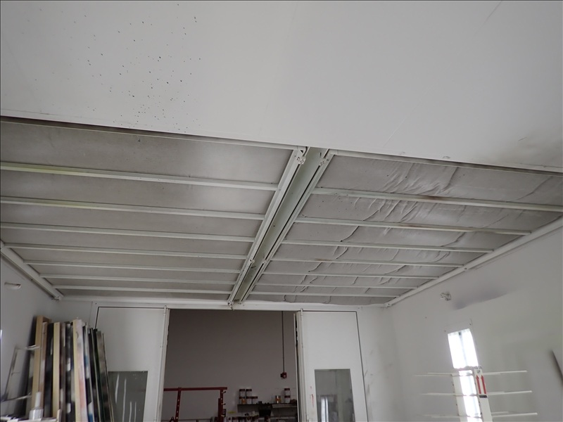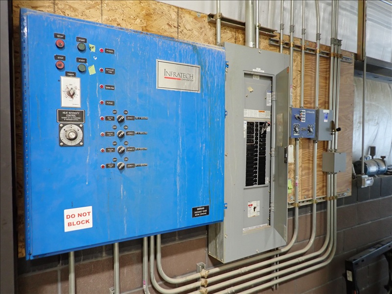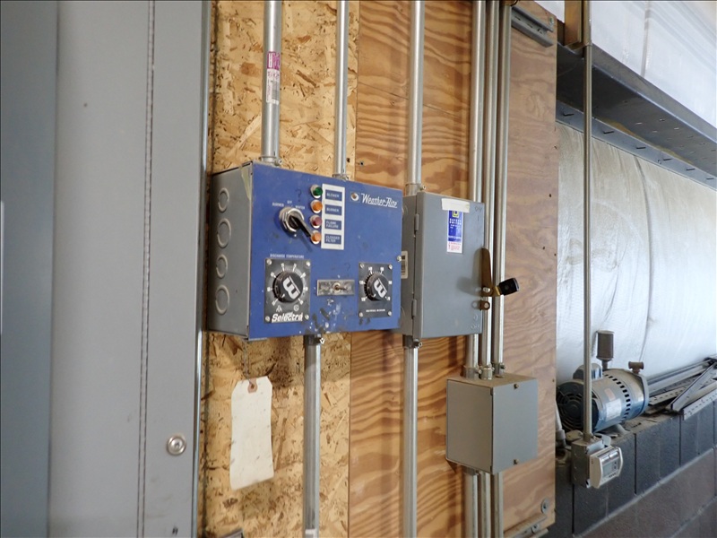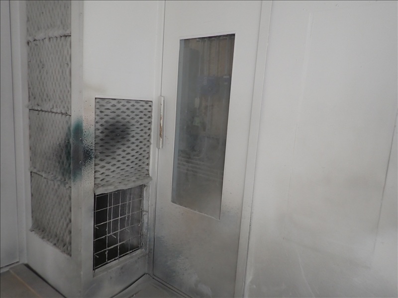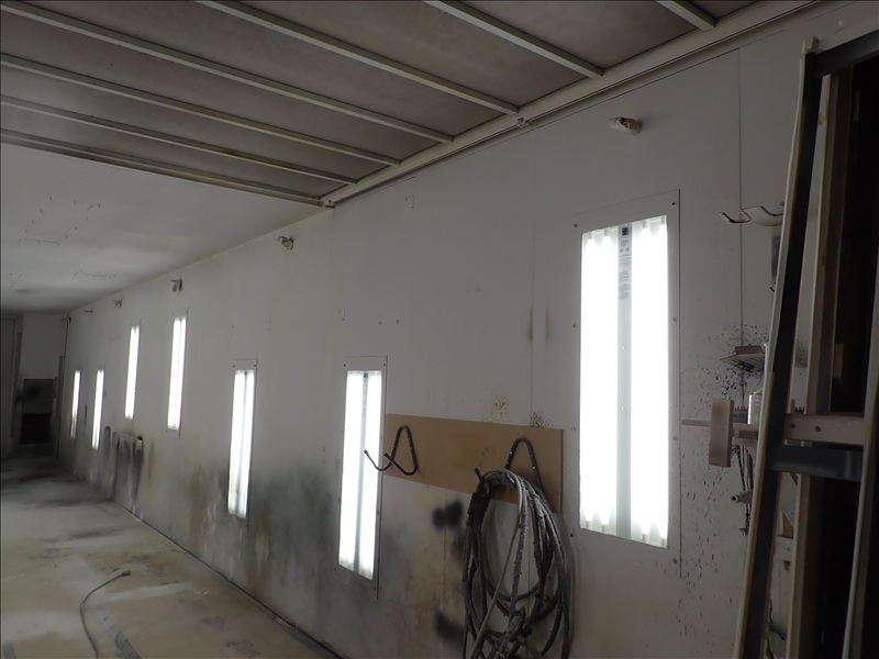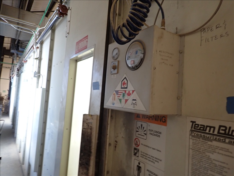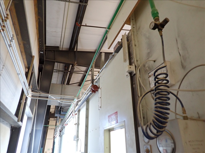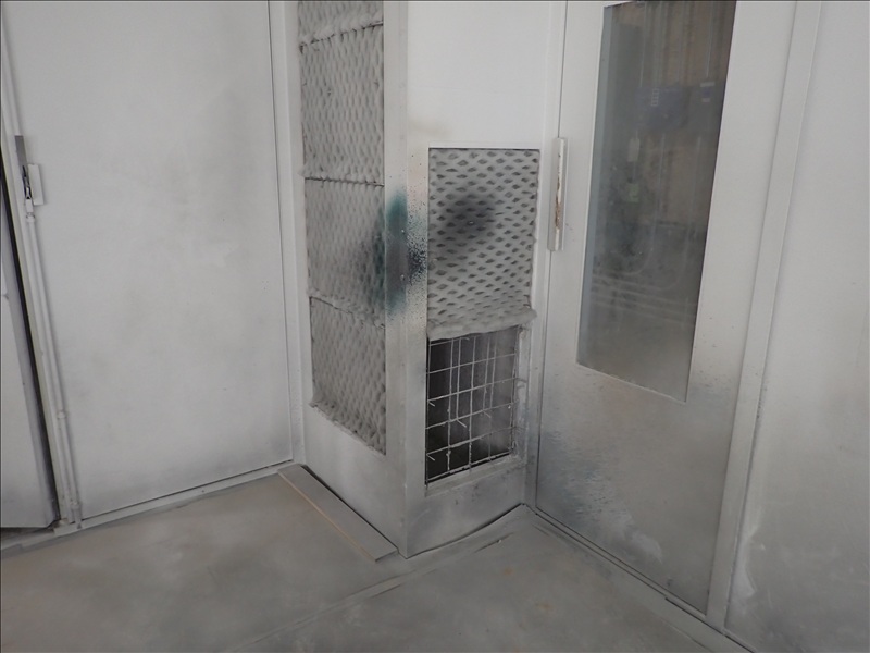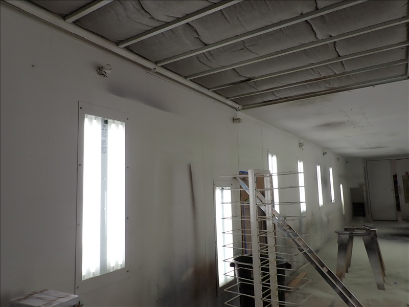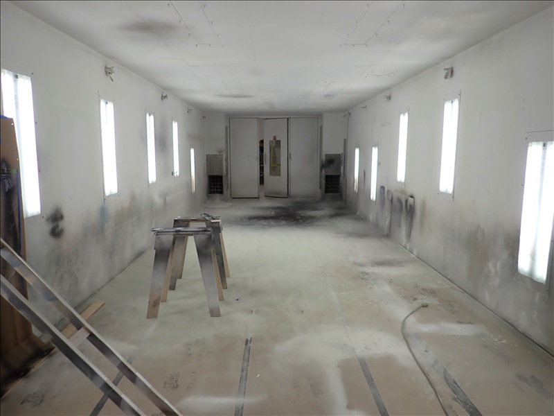 APPROX. 14'X50'X9' HEATED SPRAY BOOTH, FRONT & REAR 10' DOORS, MAN DOOR, MAKE UP AIR, LIGHTS, SPRINKLER HEADS, CONTROLS