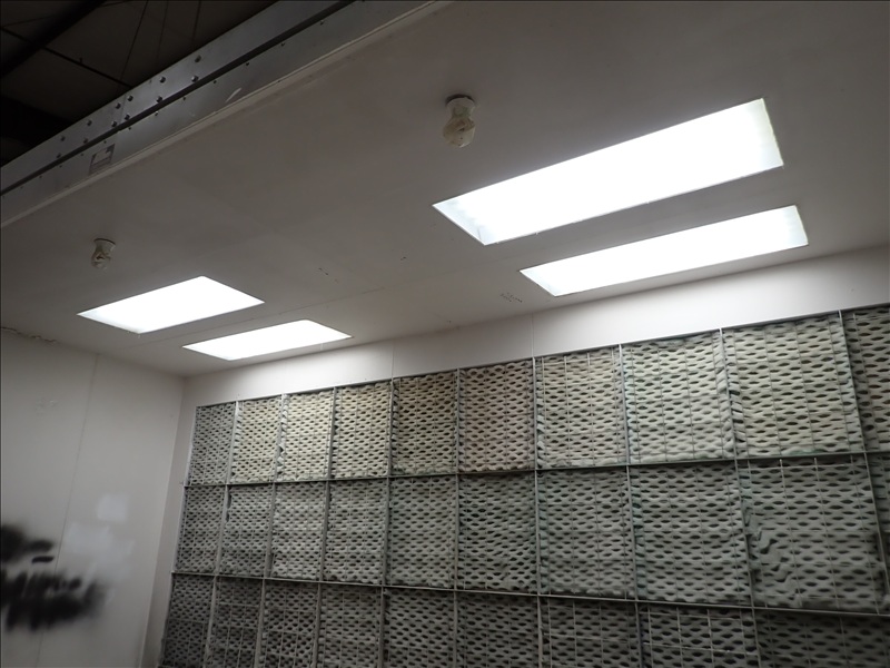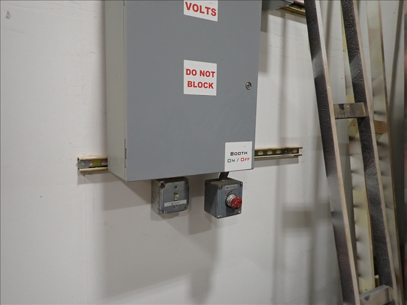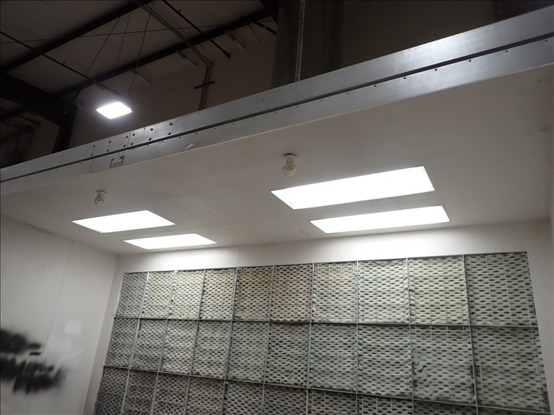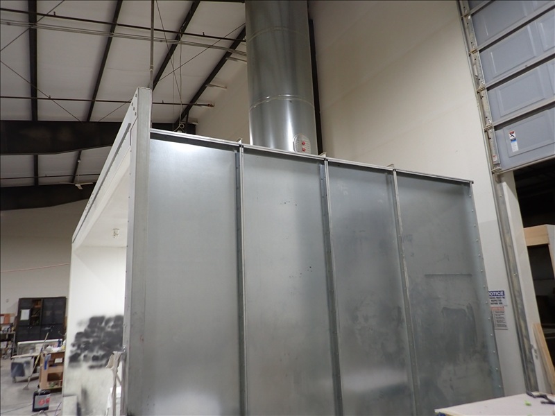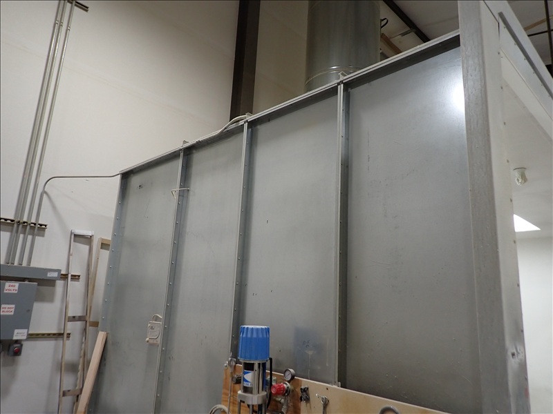 APPROX 8'X18'X10' 3-SIDED LIGHTED SPRAY BOOTH, SPRINKLER HEADS, CONTROLS