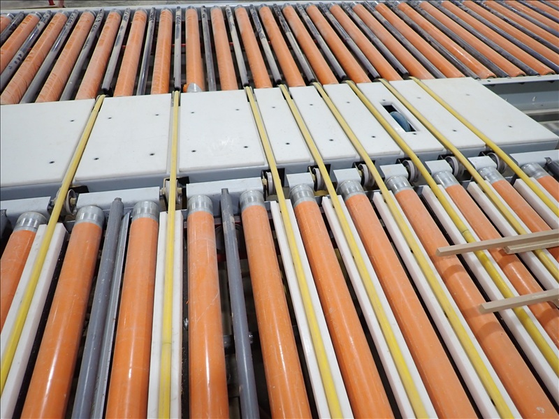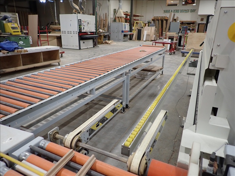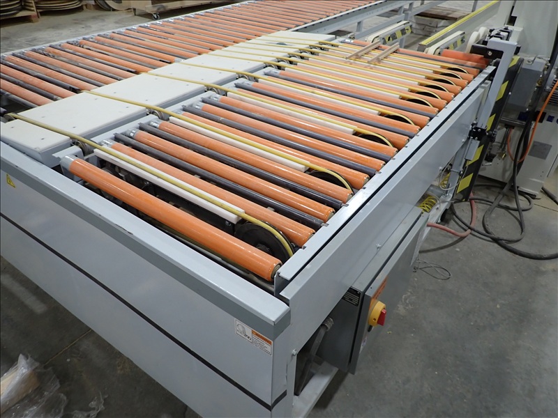 70X96 TURNBACK POWERED RETURN EDGE BANDER ROLL CONVEYOR SYSTEM, 30" ROLLS