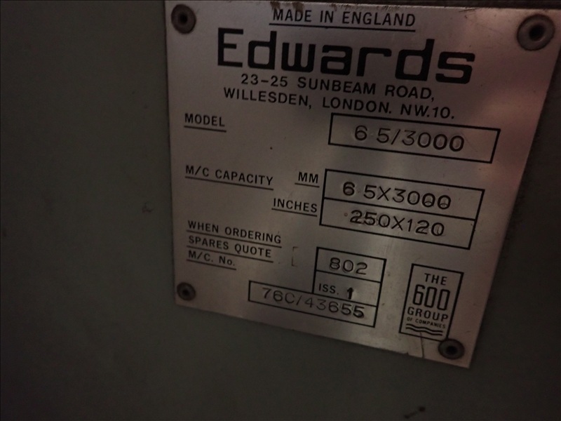 65/3000 1/4"X10' HYDRAULIC SHEAR, BACK GAUGE, SQUARING ARM, CONTROLS, S/N: 76C/43655