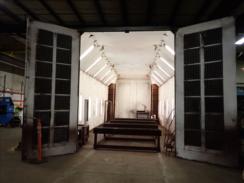 16'X40'X14' LIGHTED SPRAY BOOTH, FILTER SYSTEM, (2) MAN DOORS, BARN DOORS & CONTROLS