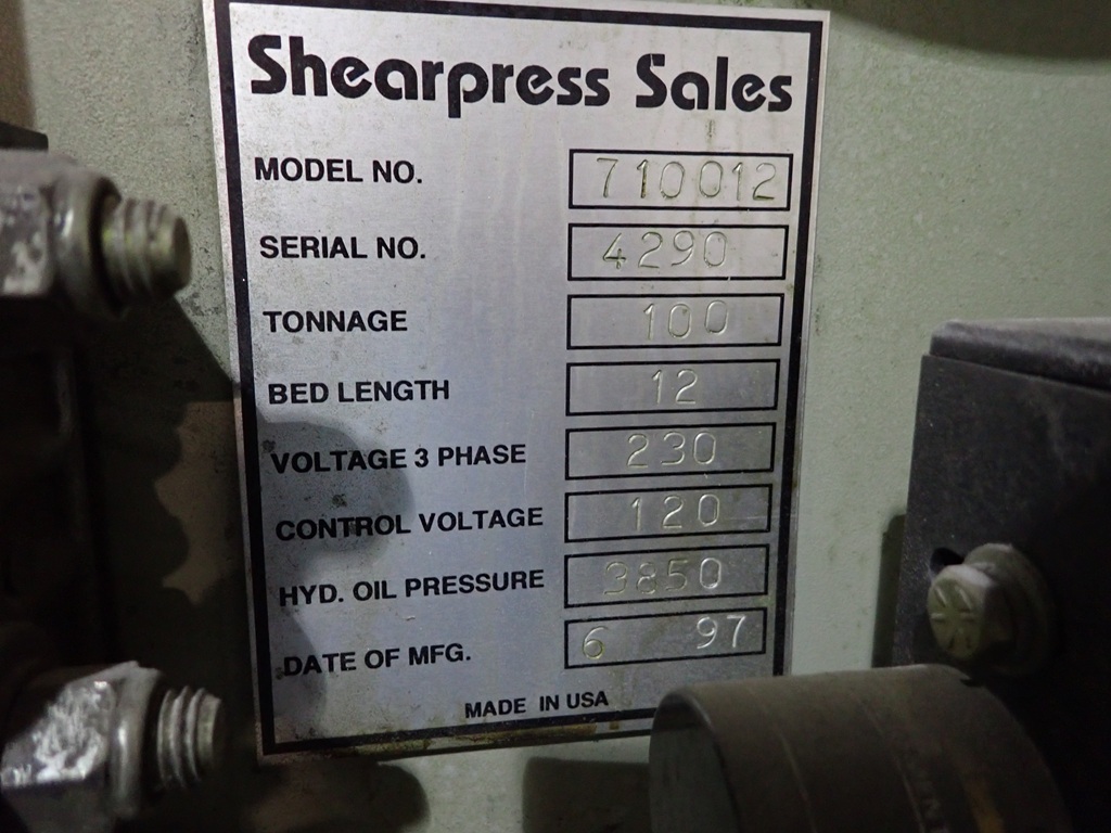 100 TON X 12' CNC HYDRAULIC PRESS BRAKE, AUTOGAUGE G24 BACK GAUGE, AUTOMEC CNC 150 AUTOGAUGE CONTROLS, ETS CONTROLS, (2) ARMS