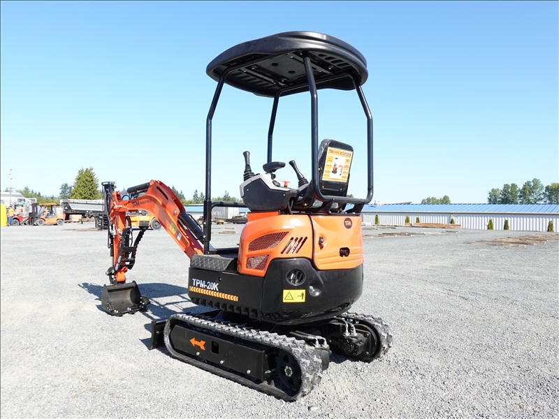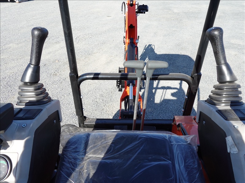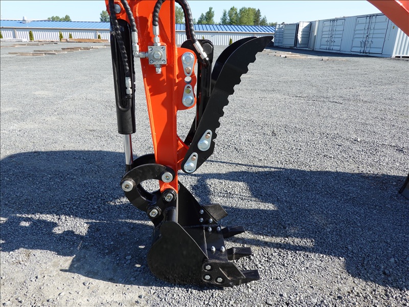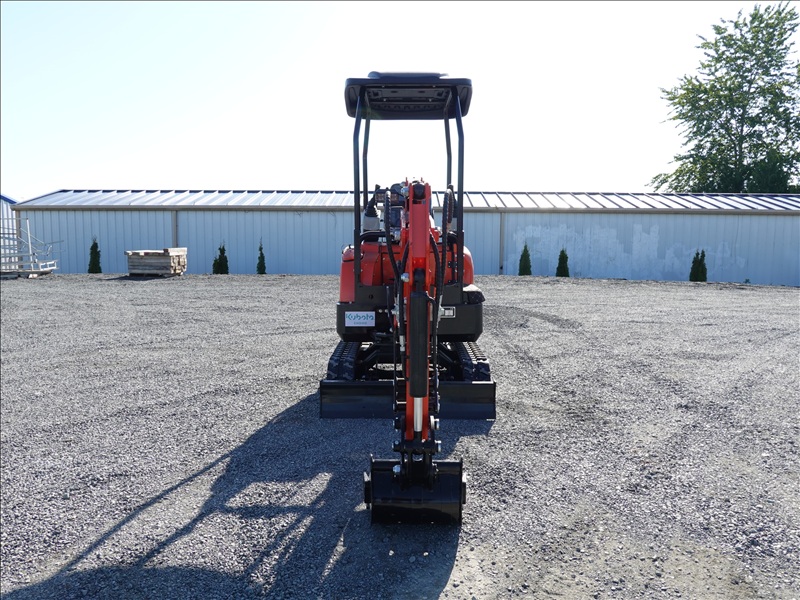 MINI EXCAVATOR, KUBOTA 3 CYL DIESEL, 13" BUCKET, HYD THUMB, AUX HYD, SWING BOOM, BLADE, RUBBER TRACKS, CANOPY